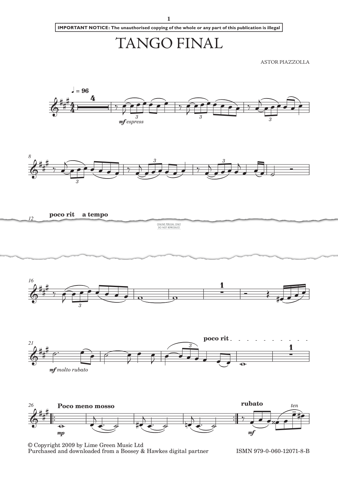 Tango Final - Noten für Klavier, Trompete Astor Piazzolla