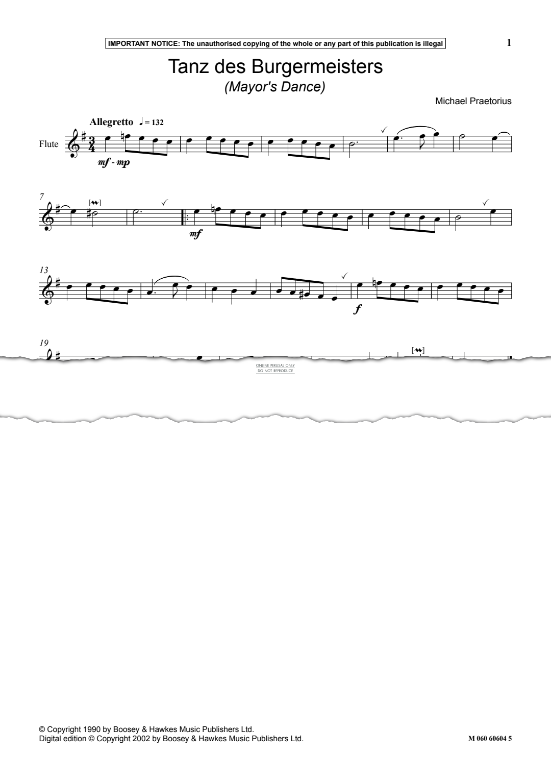 Tanz des Burgermeisters (Mayor's Dance) - Noten für Flöte, Keyboard Michael Praetorius