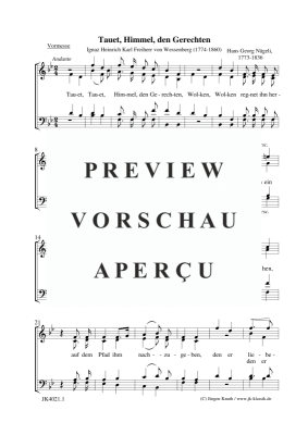 Tauet, Himmel, den Gerechten - Noten für Gemischter Chor Hans Georg Nägeli