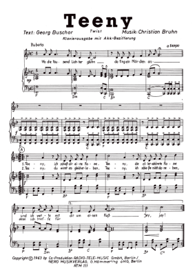 Teeny - Noten für Klavier und Gesang Drafi Deutscher