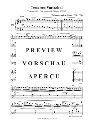 Tema con Variazioni - Noten für Klavier Solo Wolfgang Amadeus Mozart