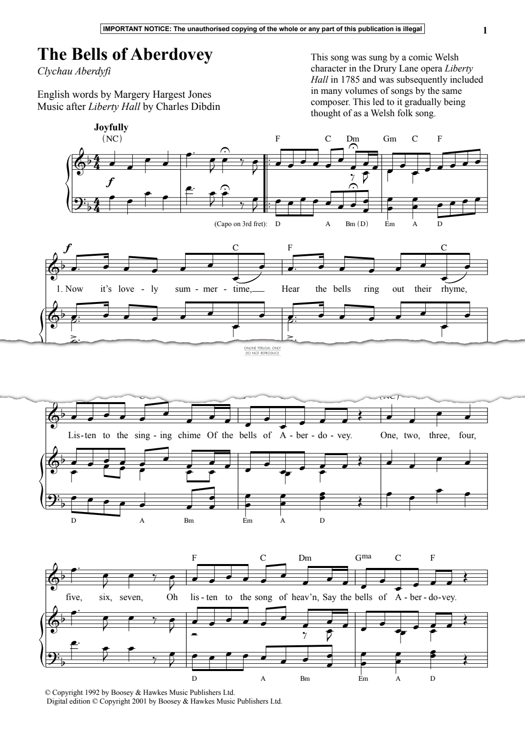 The Bells of Aberdovey - Noten für Gesang, Klavier Charles Dibdin
