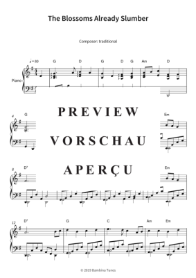 Dieses Notenheft enthält die Originalnoten zum Kinderlied "The Blossoms Already Slumber" für Klavier. Leichter Schwierigkeitsgrad in G-Dur.