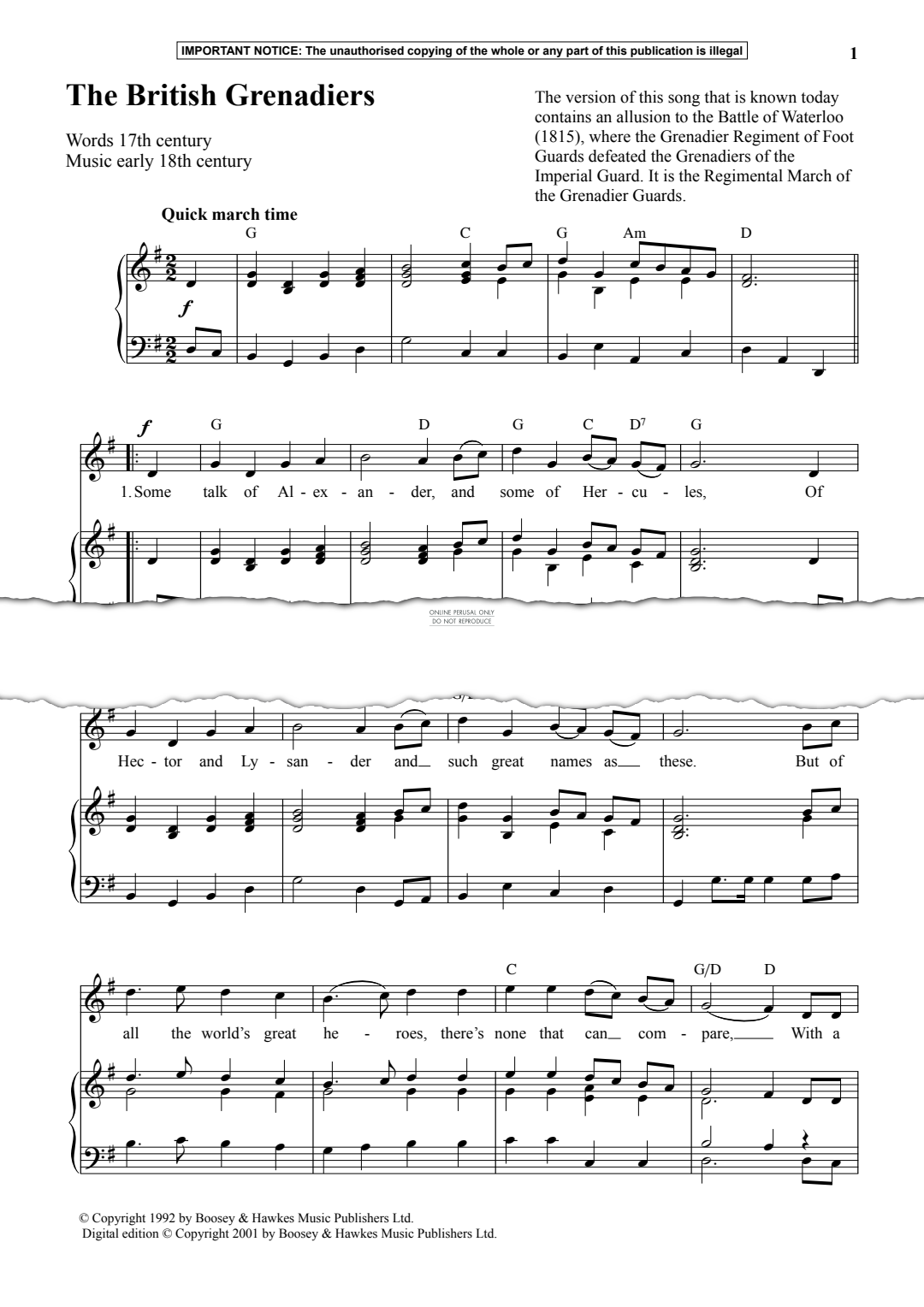 The British Grenadiers - Noten für Gesang, Klavier Anon