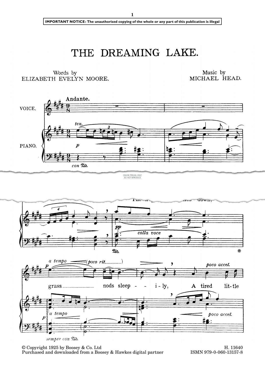 The Dreaming Lake - Noten für Gesang, Klavier Michael Head