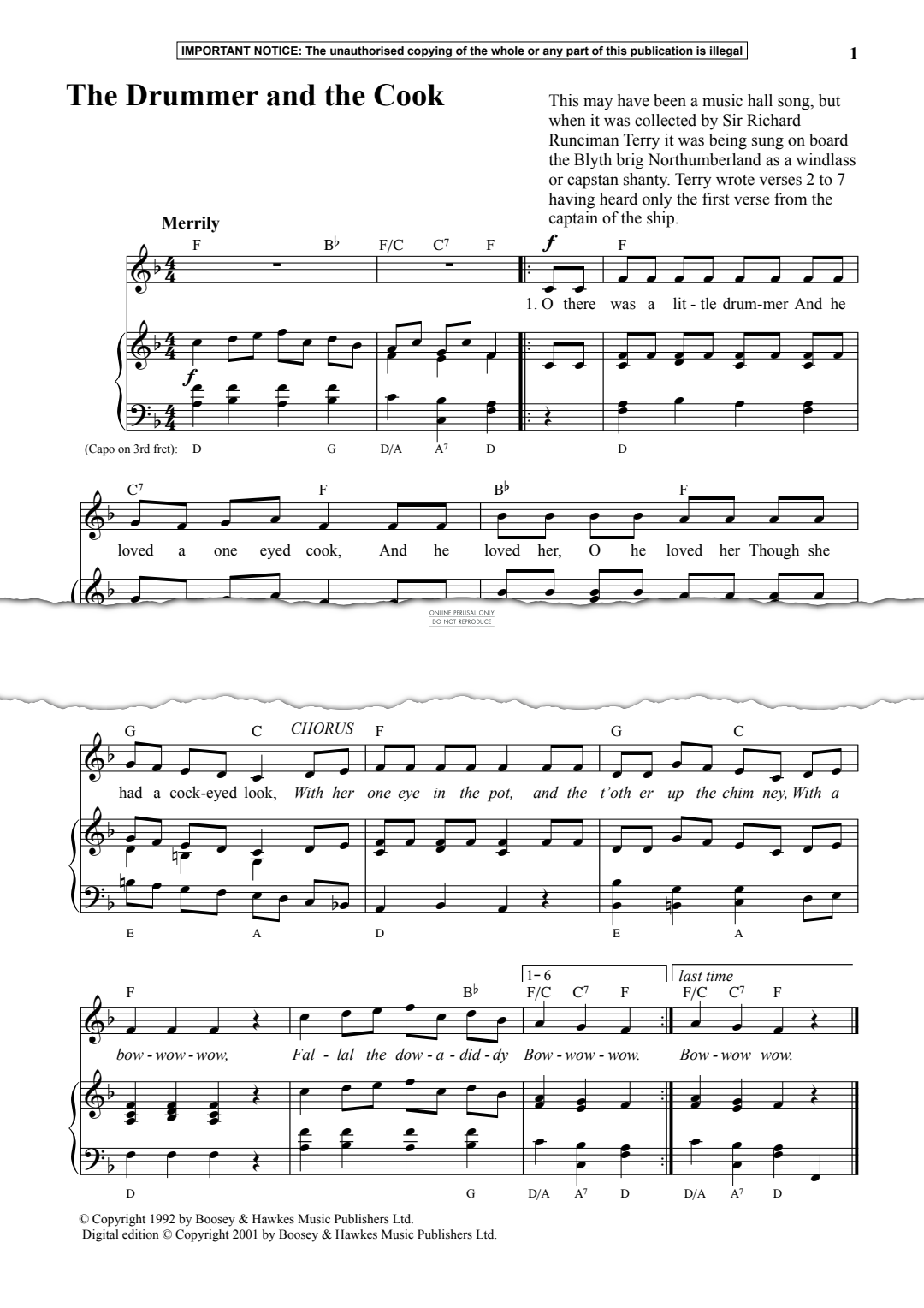 The Drummer And The Cook - Noten für Gesang, Klavier Anon