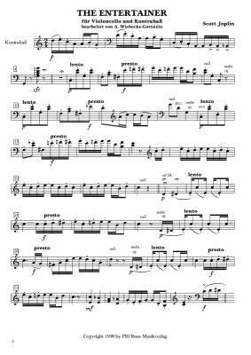 The Entertainer - Noten für Cello und Kontrabass Scott Joplin