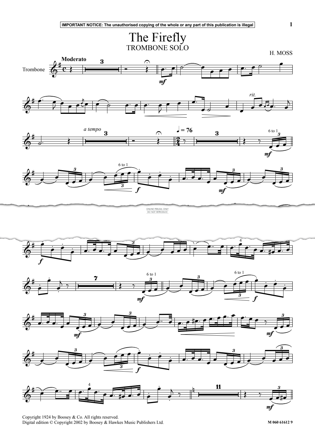 The Firefly - Noten für Klavier, Posaune H. Moss