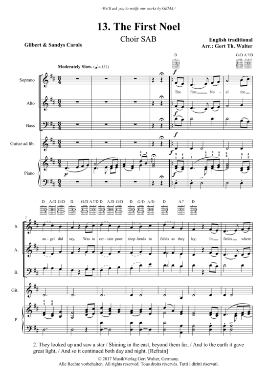 The First Noel (Gemischter Chor, Gitarre + Klavier)