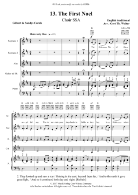 The First Noel - Noten für Frauenchor, Gitarre + Klavier Traditional
