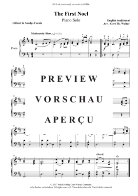 The First Noel - Noten für Klavier Solo Traditional