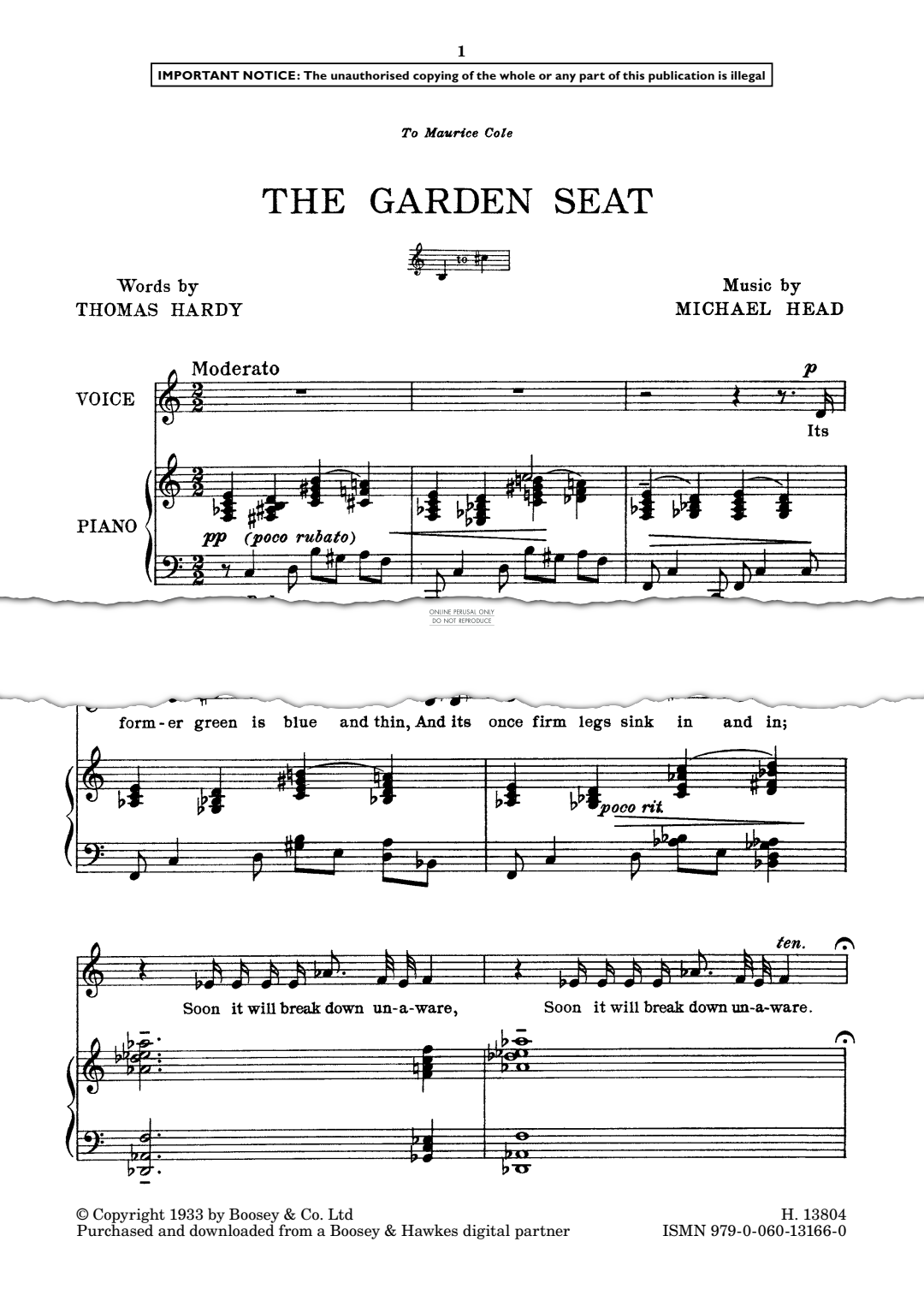 The Garden Seat - Noten für Gesang, Klavier Michael Head