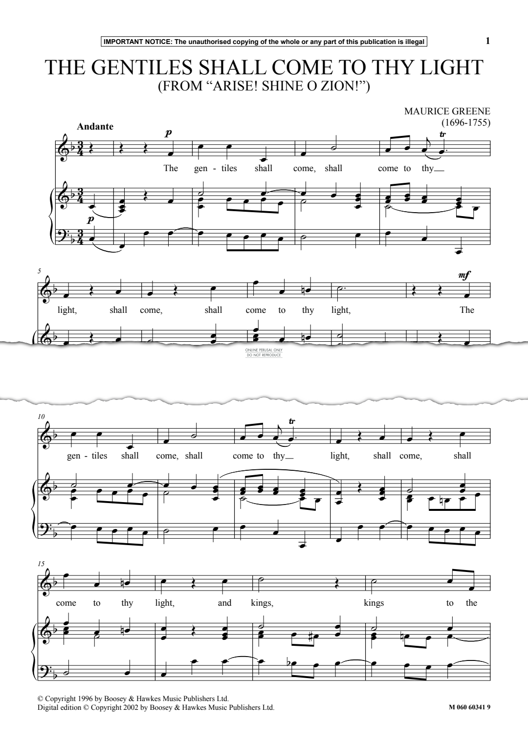 The Gentiles Shall Come To Thy Light (from Arise! Shine O Zion!) - Noten für Gesang, Klavier Maurice Greene