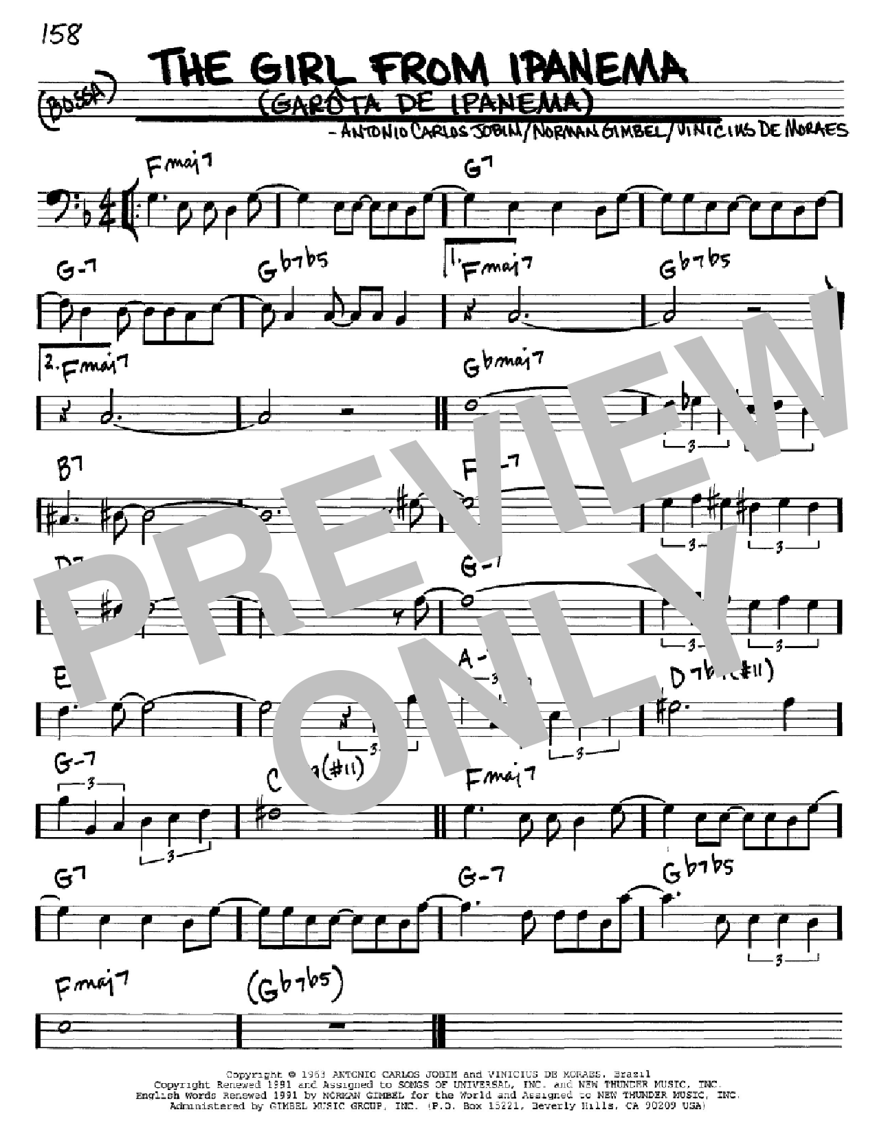 The Girl From Ipanema (Garota De Ipanema) (Real Book – Melody & Chords – Bass Clef Instruments)