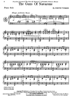 The Guns Of Navarone - Noten für Klavier und Gesang Film: "The Guns Of Navarone"