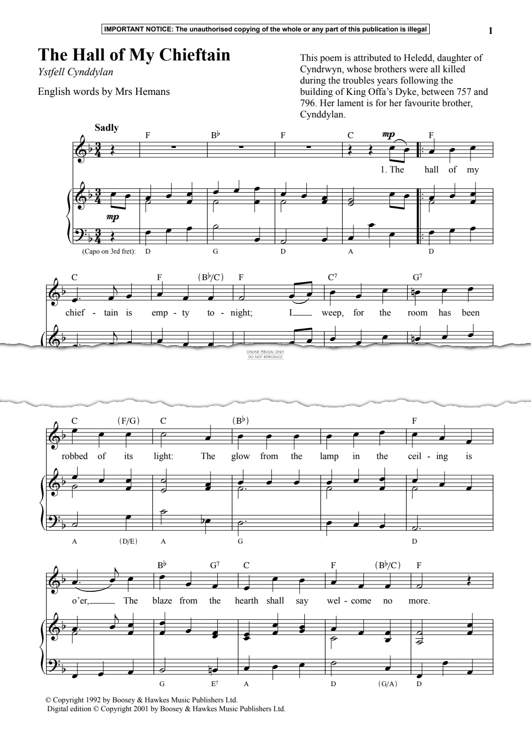 The Hall Of My Chieftain - Noten für Gesang, Klavier Traditional