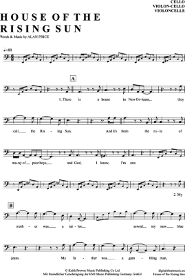 The House Of The Rising Sun - Noten für Violon-Cello The Animals