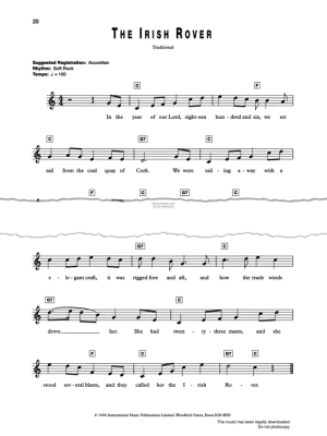 The Irish Rover - Noten für Gesang, Gitarre, Keyboard Irish Traditional