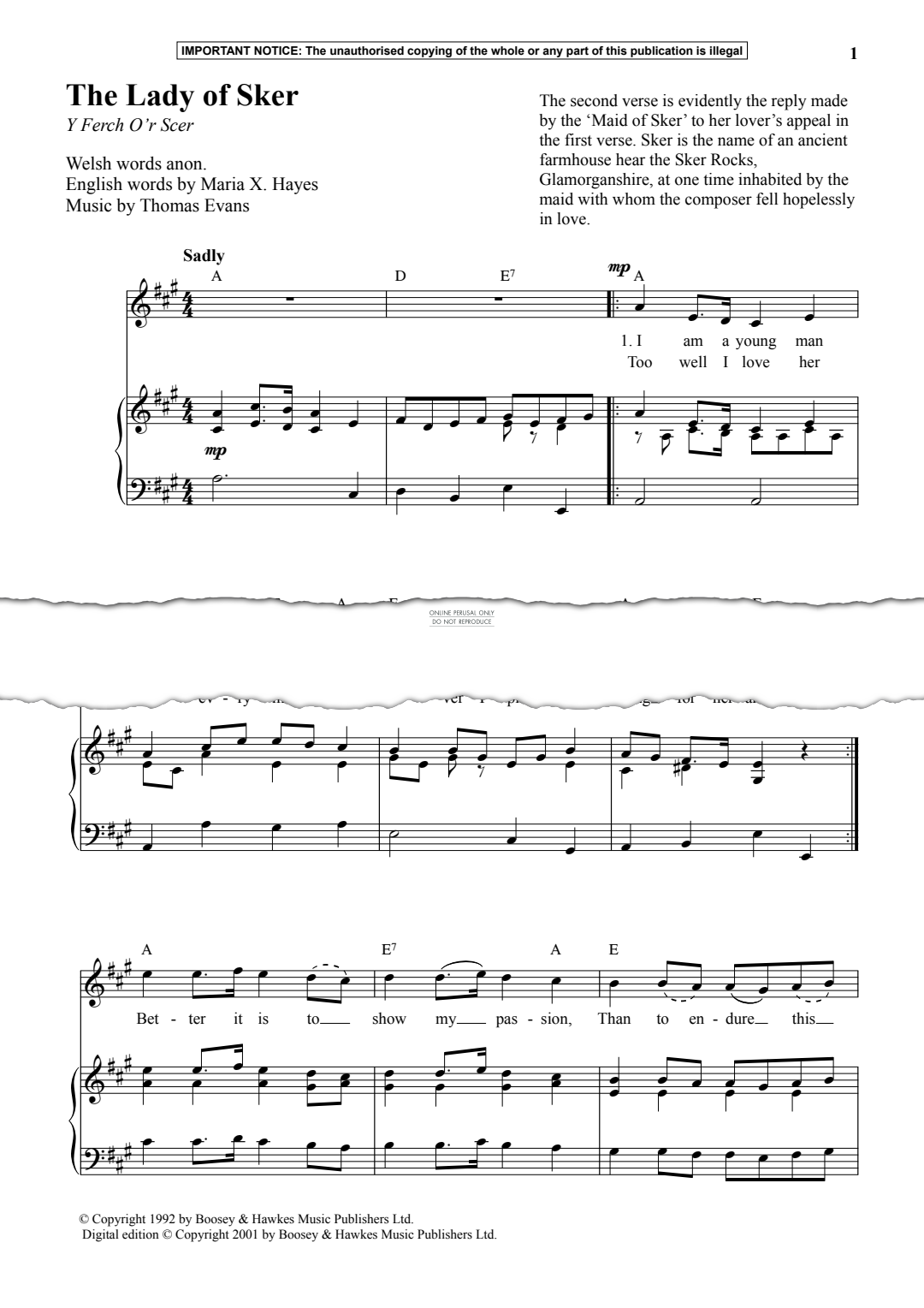The Lady Of Sker - Noten für Gesang, Klavier Anon