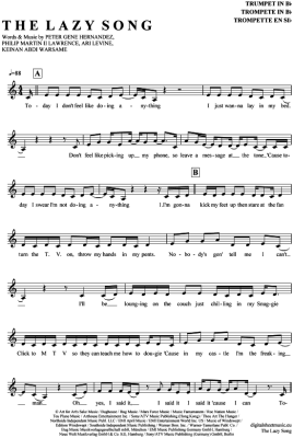 The Lazy Song - Noten für Trompete in B Bruno Mars