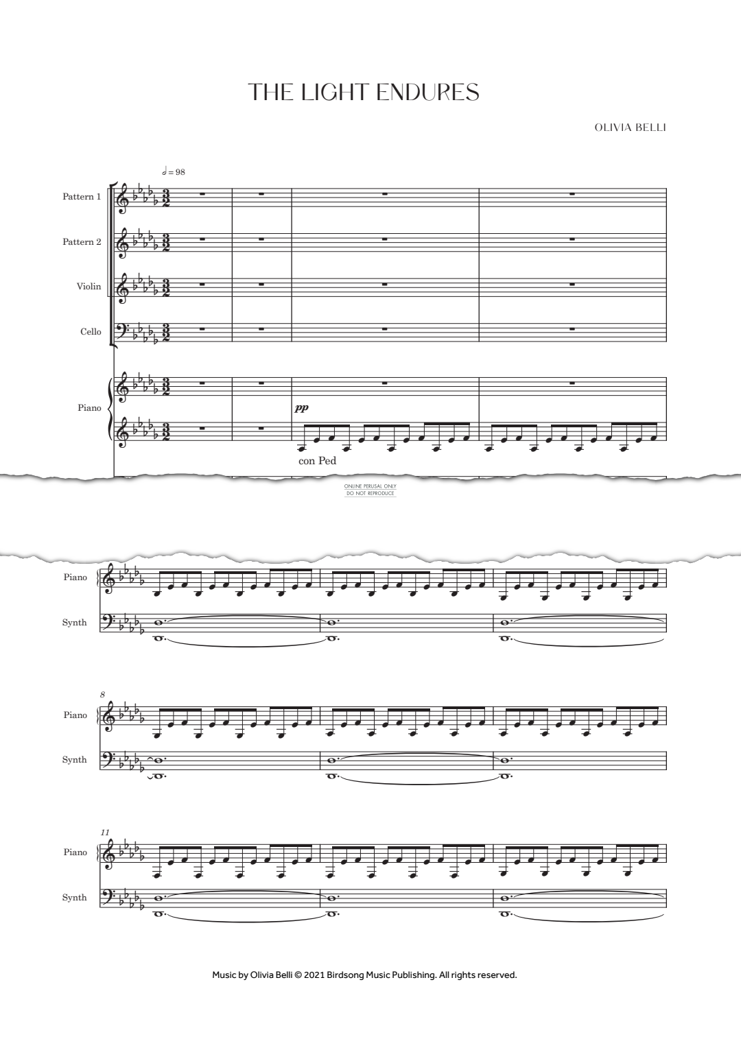 The Light Endures - Noten für Keyboard, Klavier, Violine, Violoncello Olivia Belli