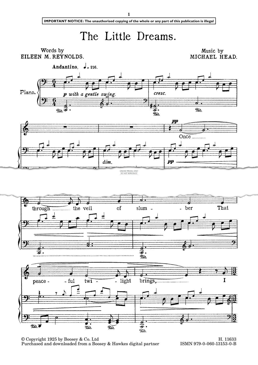 The Little Dreams - Noten für Gesang, Klavier Michael Head