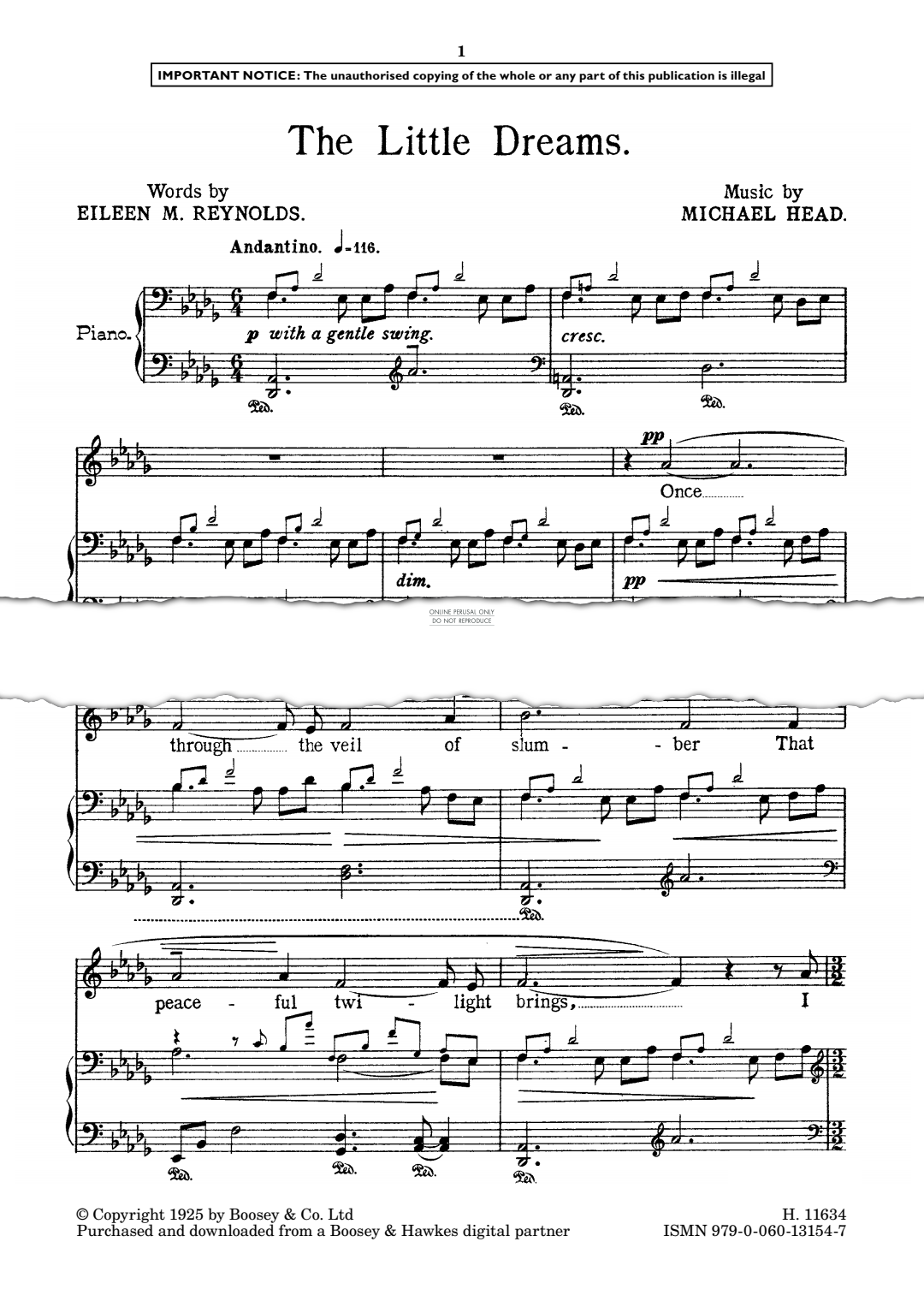The Little Dreams - Noten für Gesang, Klavier Michael Head