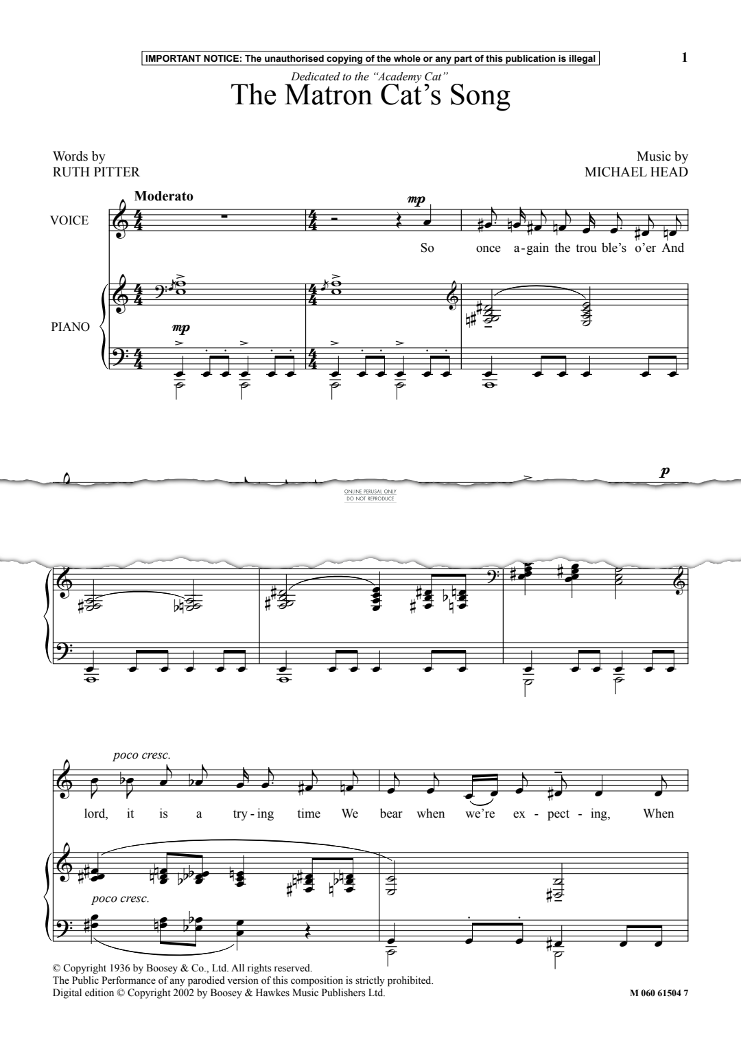 The Matron Cat’s Song - Noten für Gesang, Klavier Michael Head
