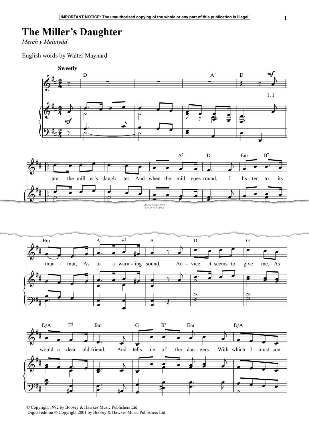 The Miller's Daughter - Noten für Gesang, Klavier Anon