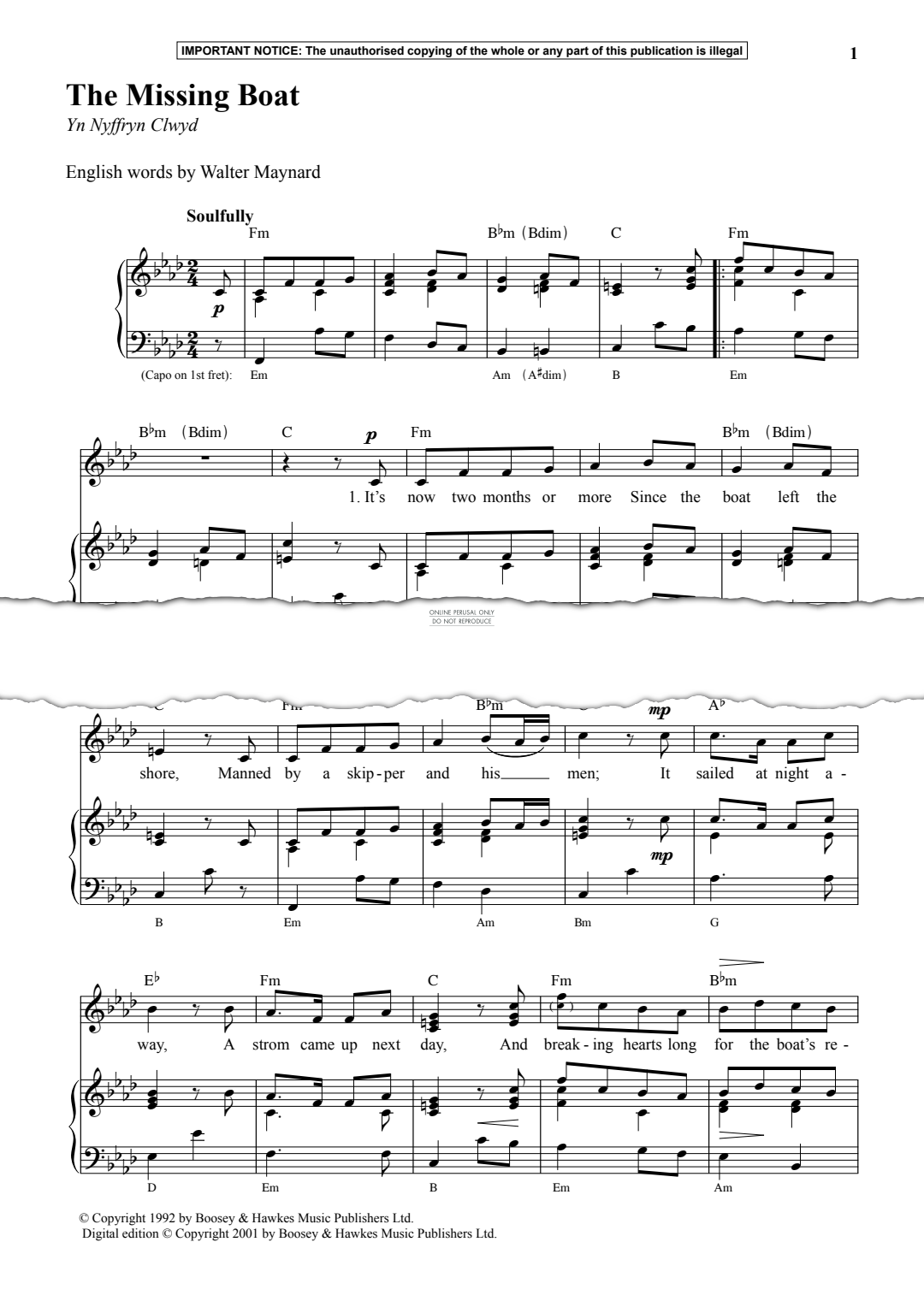 The Missing Boat - Noten für Gesang, Klavier Anon