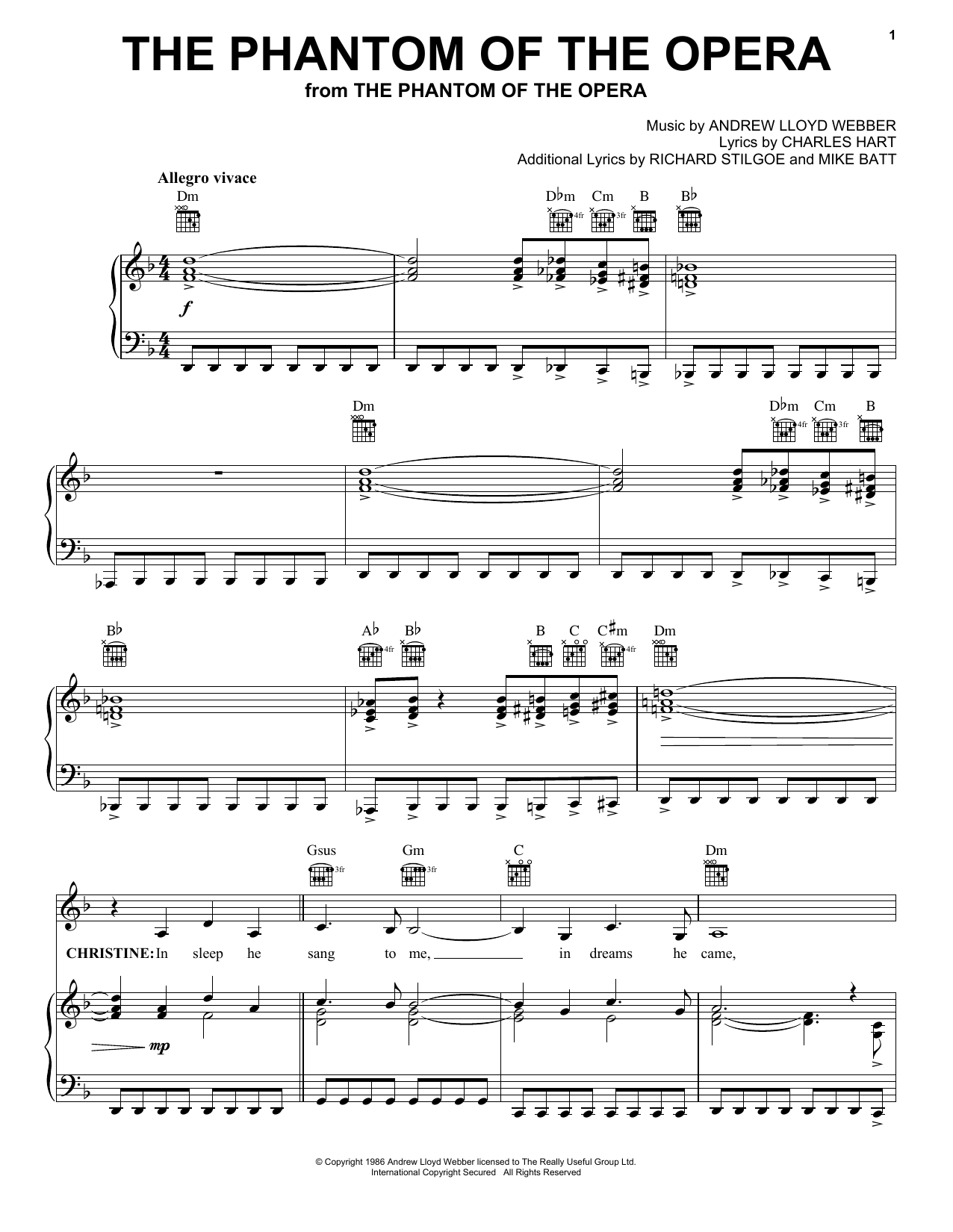 The Phantom Of The Opera (Klavier, Gesang und Gitarrenakkorde (Melodie der rechten Hand))