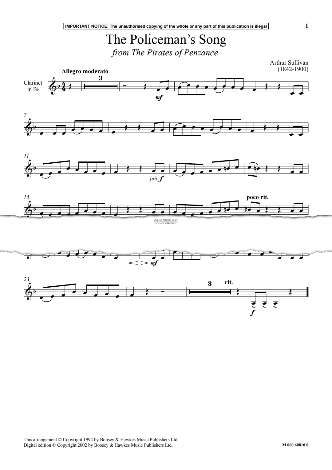 The Policeman’s Song from The Pirates of Penzance - Noten für Klarinette, Klavier Arthur S. Sullivan