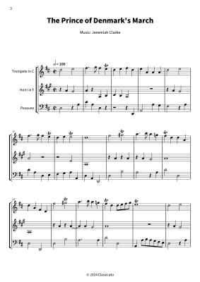Entdecke die Noten für "The Prince of Denmark´s March", auch bekannt als "Trumpet Voluntary" von Jeremiah Clarke, arrangiert für Blechbläsertrio. Diese Ausgabe ist für Trompete in C, Horn in F und Posaune in D-Dur geschrieben. Perfekt für feierliche Anlässe wie Hochzeiten und Zeremonien, um dem Repertoire deines Ensembles ein bekanntes und klassisches Highlight hinzuzufügen und jeder Veranstaltung eine elegante und festliche Note zu verleihen.