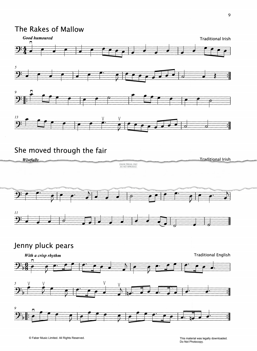 The Rakes Of Mallow/She Moved Through The Fair/Jenny Pluck Pears/The Water Is Wide/Roaring Jelly - Noten für Violoncello Mary Cohen
