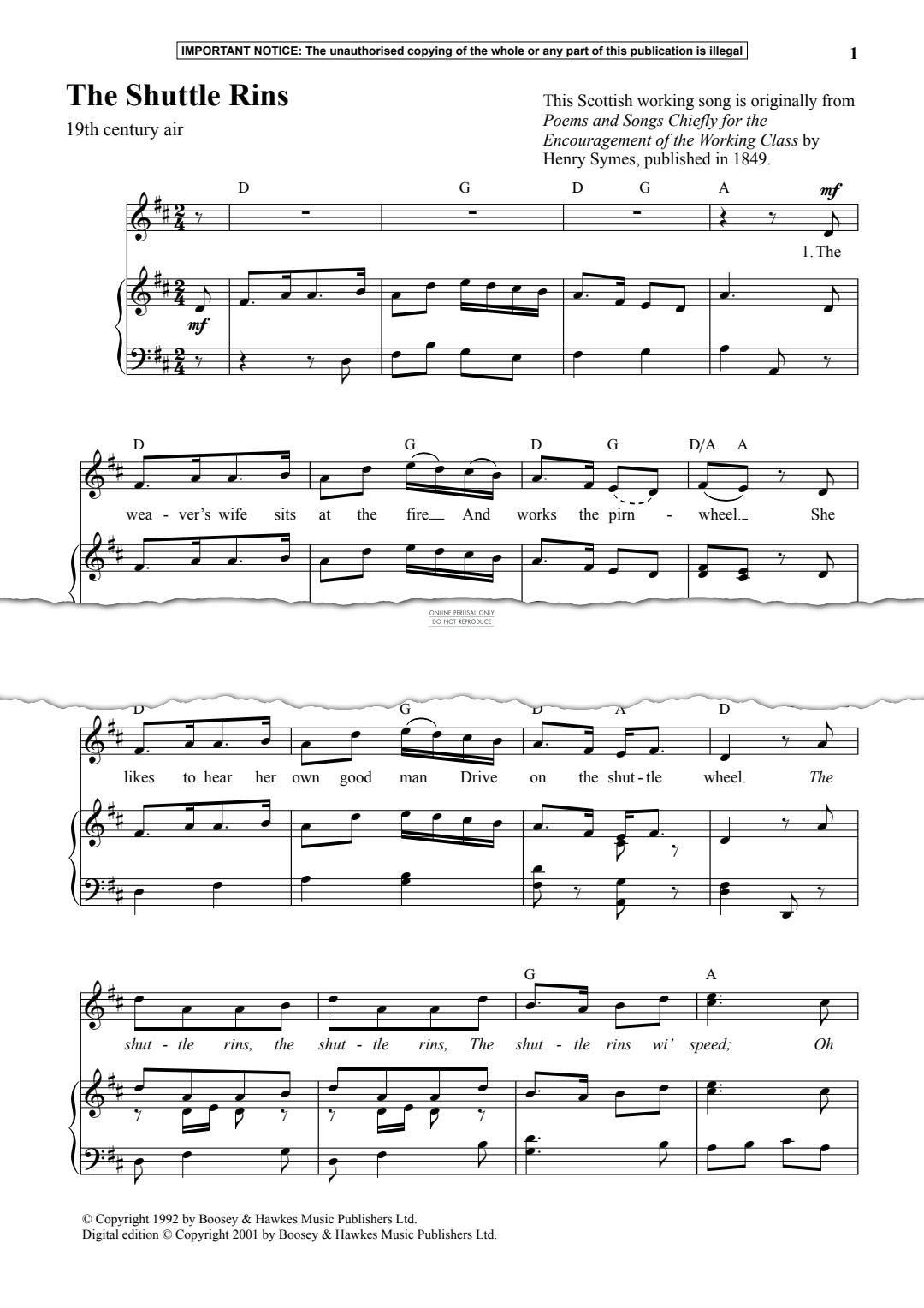 The Shuttle Rins - Noten für Gesang, Klavier Anon