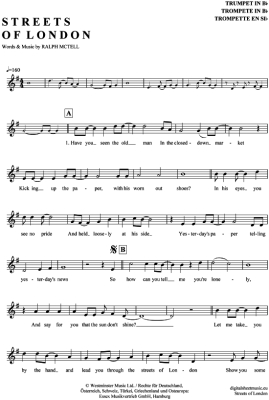 The Streets of London - Noten für Trompete in B Ralph McTell
