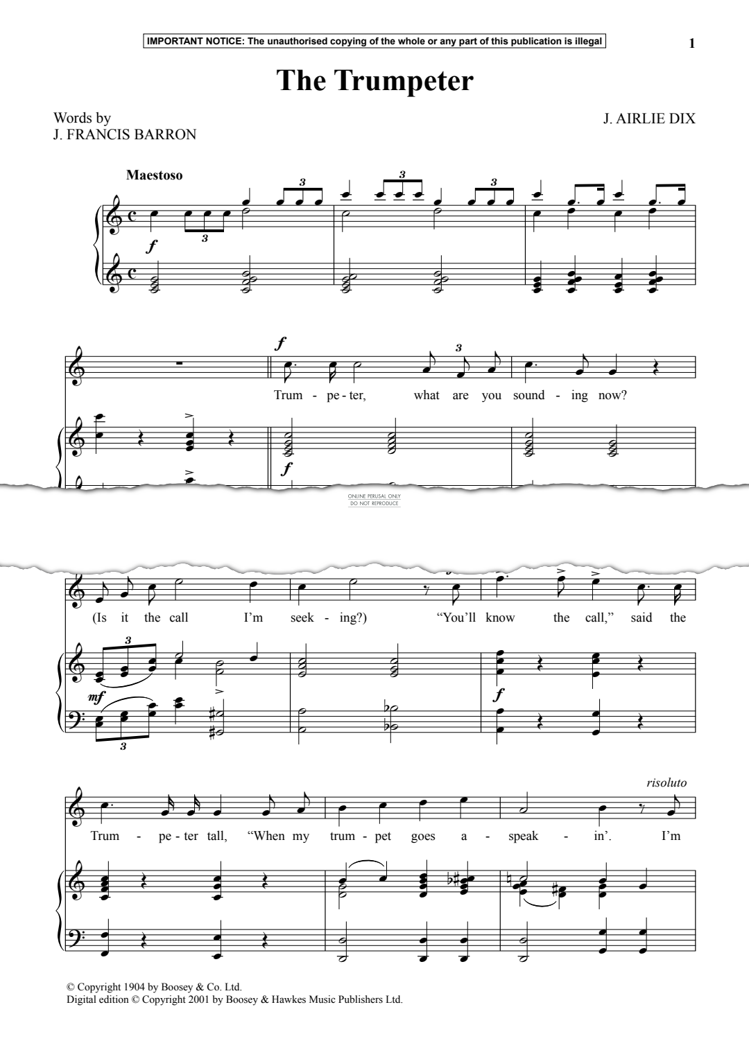 The Trumpeter - Noten für Gesang, Klavier J. Airlie Dix