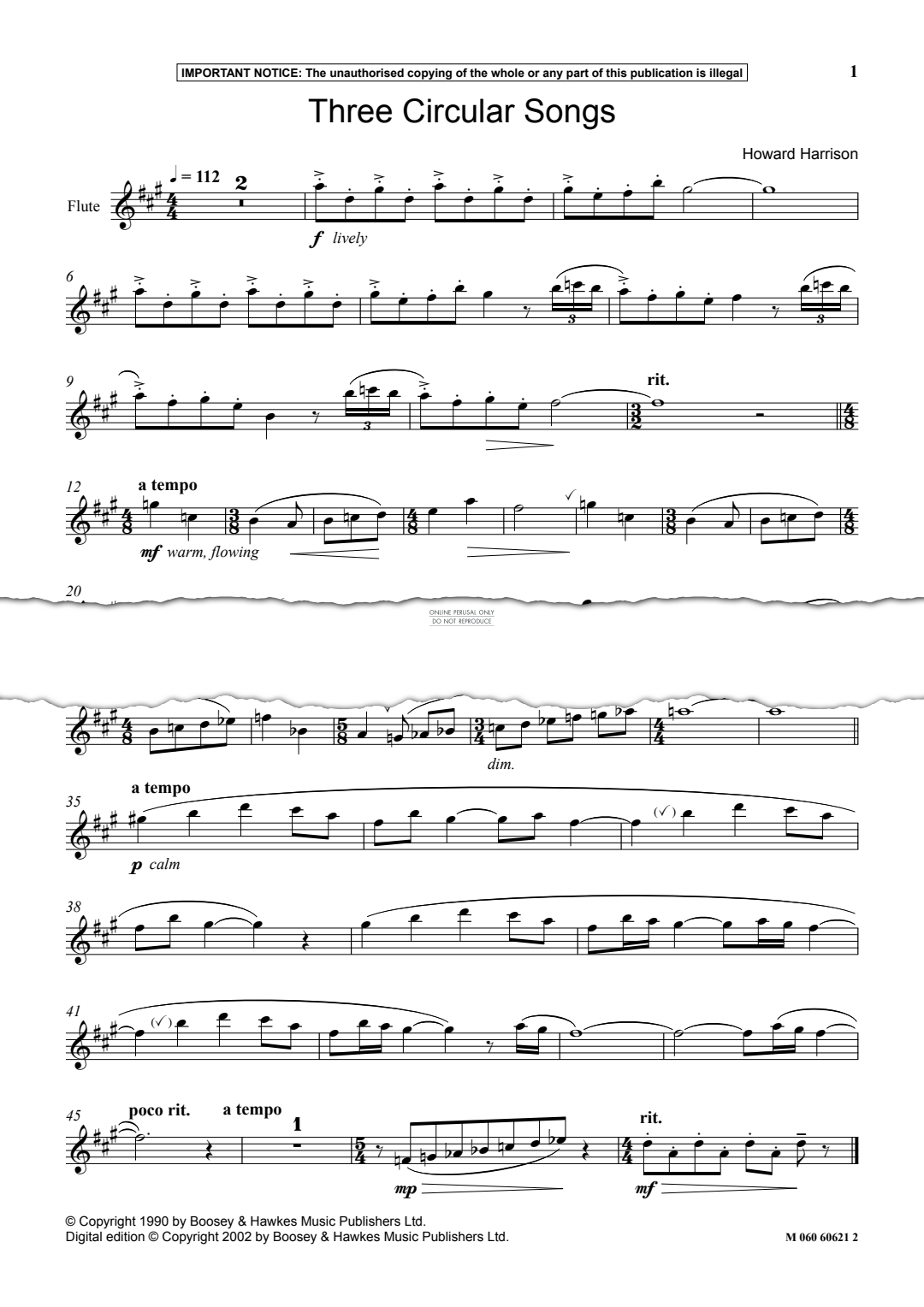 Three Circular Songs - Noten für Flöte, Keyboard Howard Harrison
