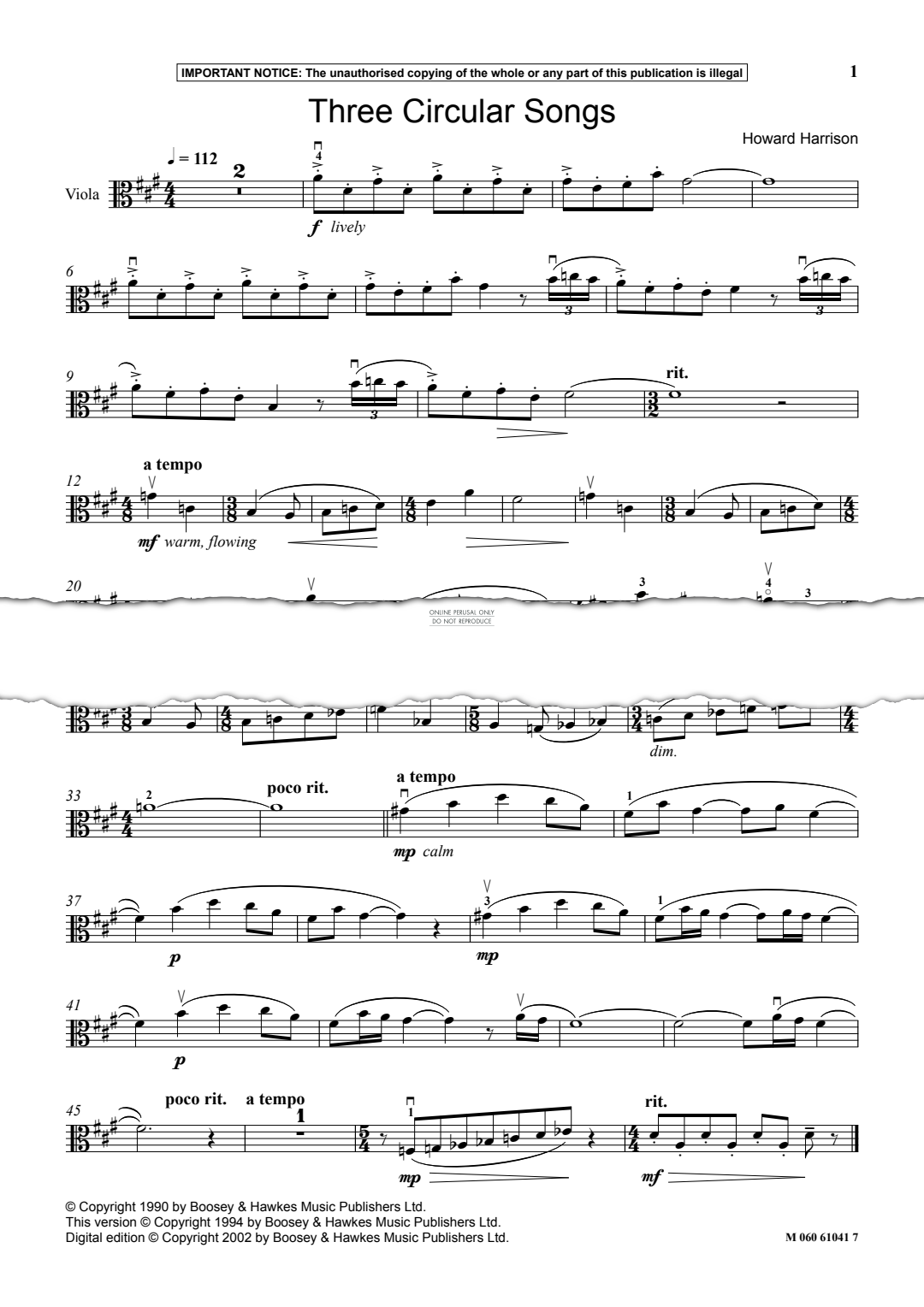 Three Circular Songs - Noten für Keyboard, Viola Howard Harrison