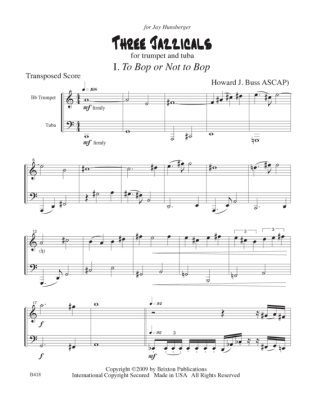 Year Of Composition: 2009 / Duration: 12´ / Dedicated to tubist Jay Hunsberger. This colorful composition is cast in 3 movements - To Bop or Not to Bop, Sounds from the Cool Smoke, and Hotish.