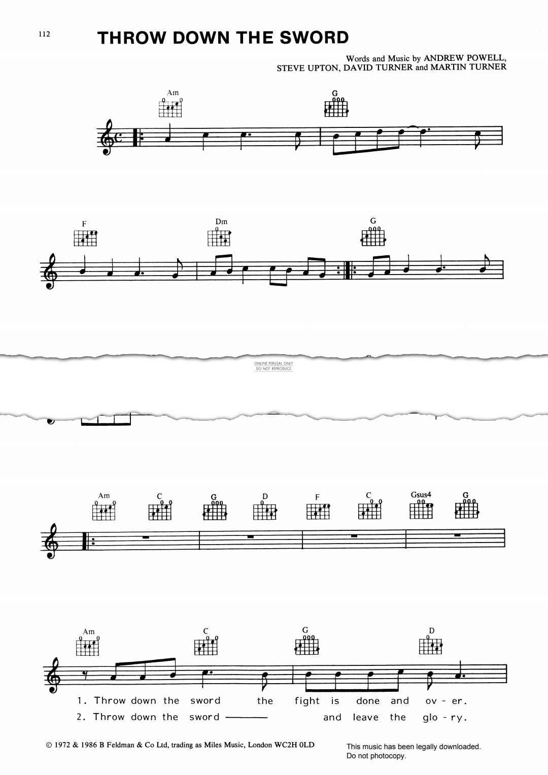 Throw Down The Sword (Gitarre, Gesang, Solo)