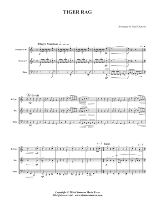 Tiger Rag - Noten für Blechbläser Trio für Trompete in B, Horn in F + Tuba Traditional (arr. Paul Chauvin)