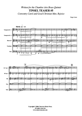 Tinsel Teaser 5 - Noten fĂŒr BlechblĂ€serquintett Coventry Carol, Good Christian Men Rejoice