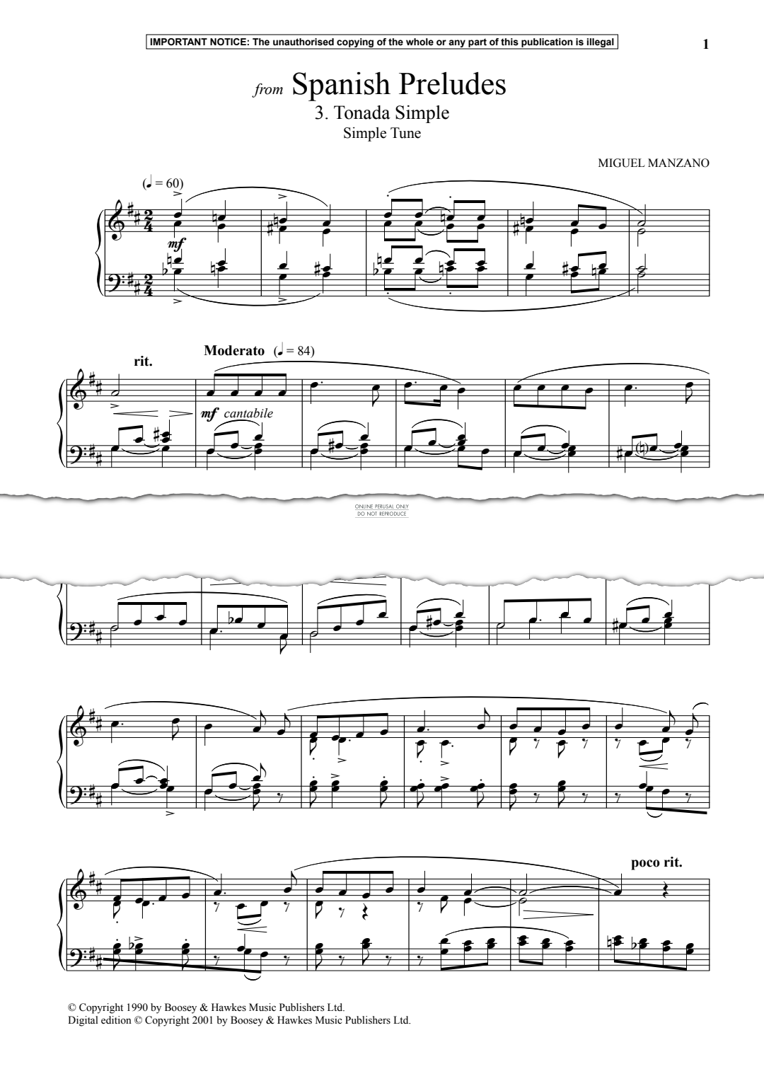 Tonada Simple (Simple Tune) from Spanish Preludes - Noten für Klavier Miguel Manzano