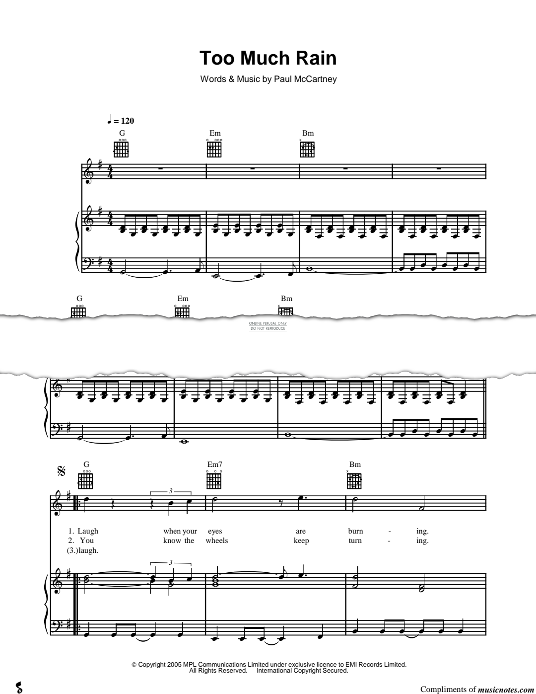 Too Much Rain - Noten für Gesang, Gitarre, Klavier Paul McCartney