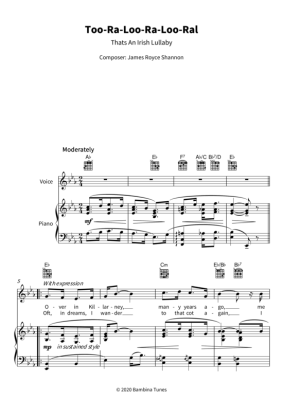 Too-Ra-Loo-Ra-Loo-Ral - Thats An Irish Lullaby - Noten für Gesang + Klavier, Gitarre James Royce Shannon