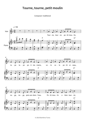 Tourne, tourne, petit moulin - Noten für Gesang + Klavier traditional