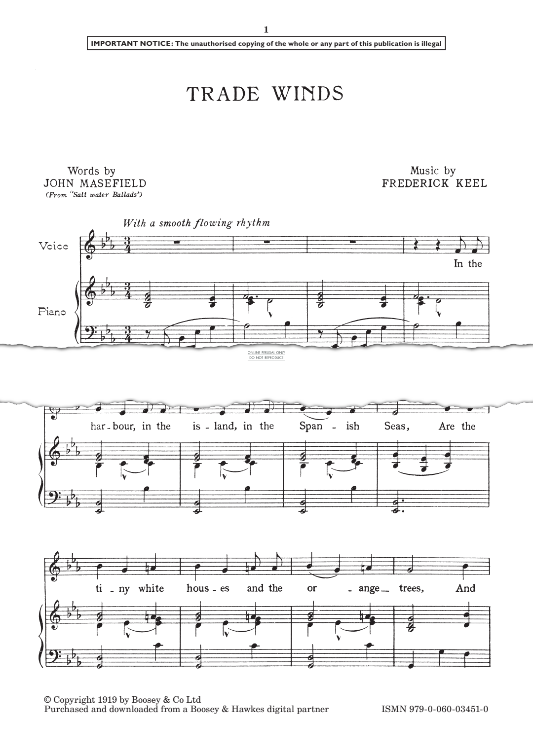 Trade Winds (Alizes) - Noten für Gesang, Klavier Frederick Keel