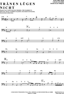 Tränen Lügen Nicht - Noten für E-Bass Michael Holm