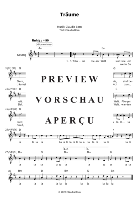 Träume - Noten für Gesang und Akkorde Leadsheet Yvaine